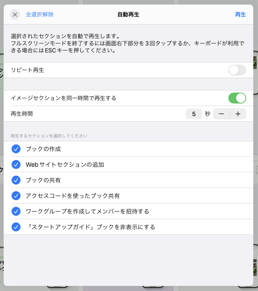 When “Play image section at same time” is checked, the playback time is set the same for all photos.