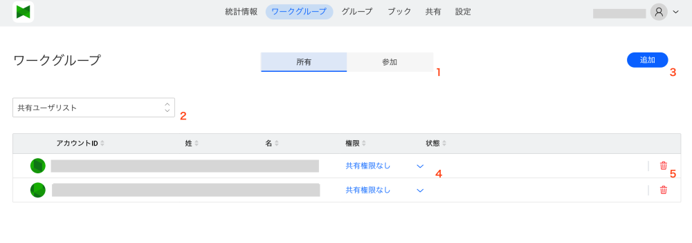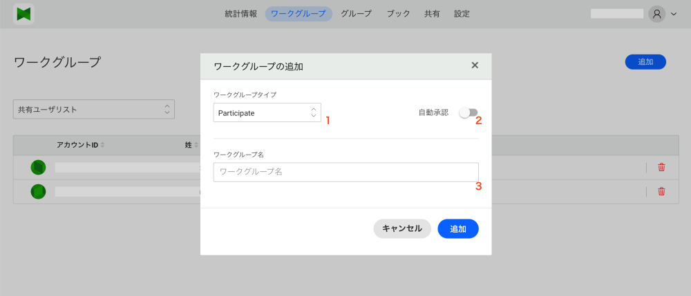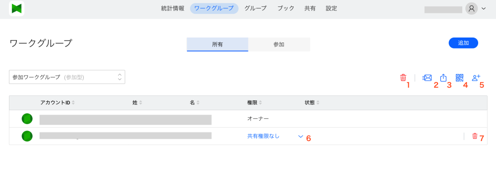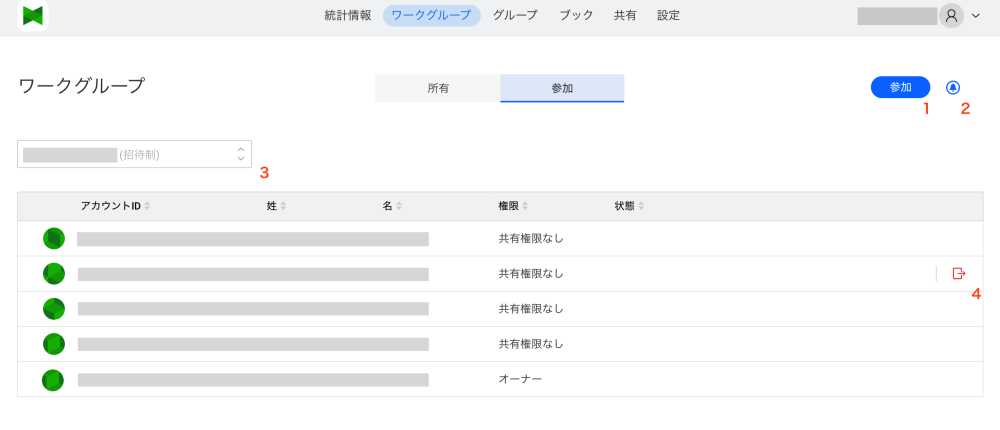 This button allows you to switch between Owned : the workgroup with which you shared the book you created and Joined : the workgroup with which the book was shared.