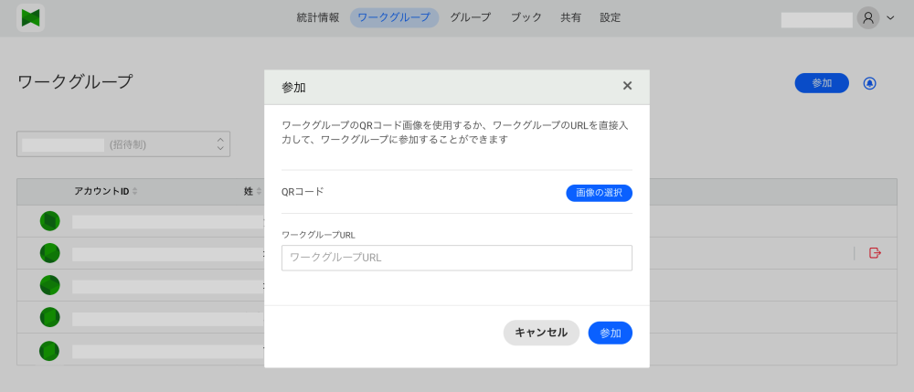 Select the QR image file to join the workgroup or enter the URL to join members to the workgroup.