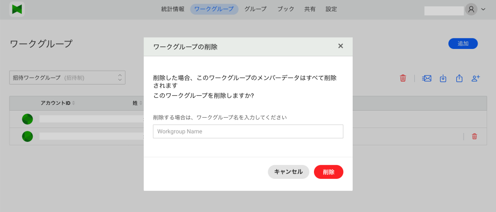 Clicking the Delete button will delete the member registered in the workgroup.