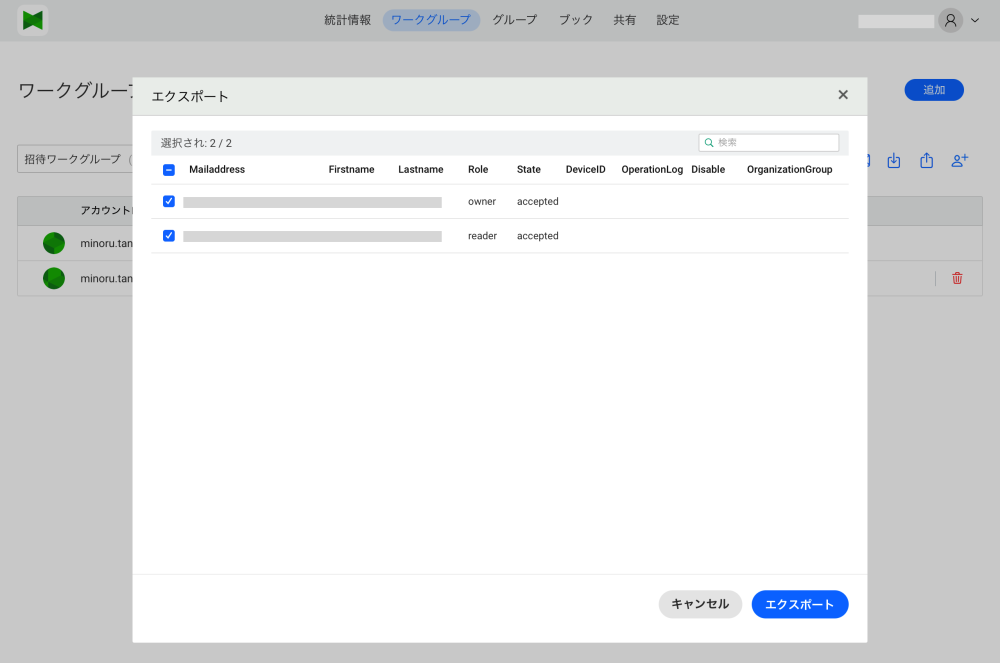 Export the members participating in the workgroup in csv.