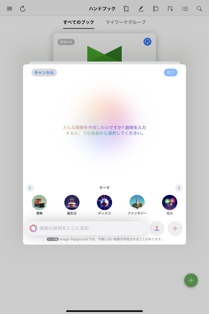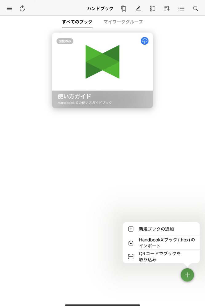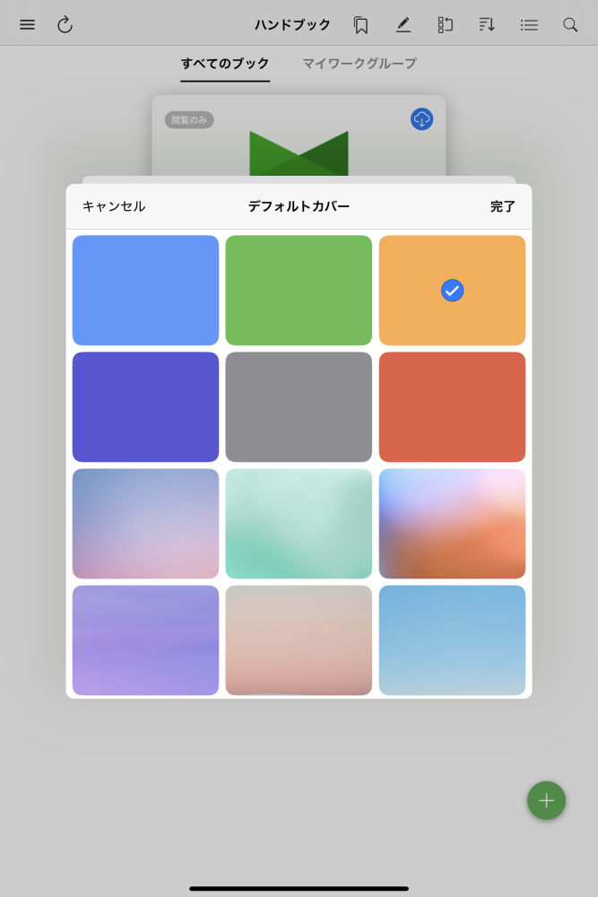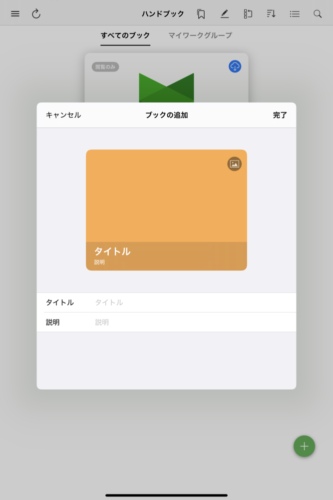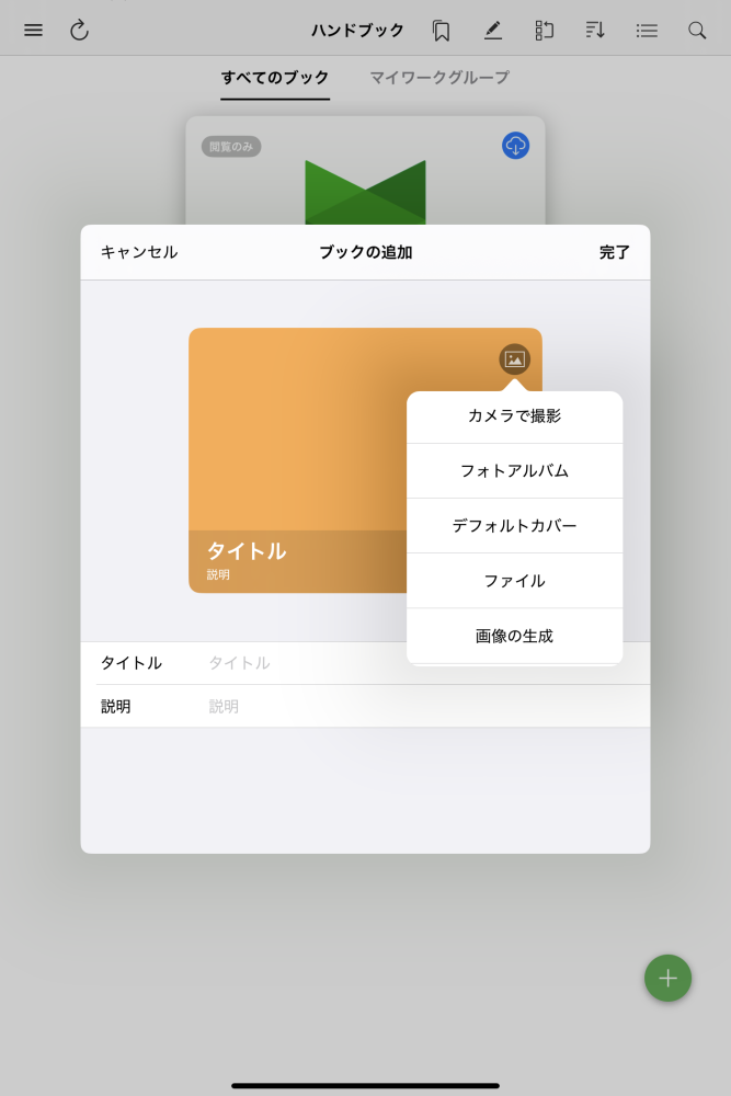 +ボタンをタップすると、ブックを新規作成するメニューが表示されます。