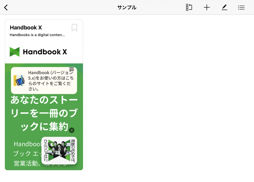Handbook Xを選択するとコンテンツをセクションとして取り込む時のタイトルとイメージが表示されます。